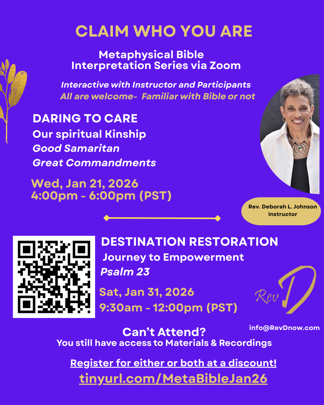 A metaphysical understanding of Scripture revolutionized my life, opening my eyes, mind, and heart. Bible scholars teach chapter and verse. I share tools and techniques to help you discern Bible wisdom for yourself, even if you have never touched a Bible. I have been doing this for four decades in seminaries and spiritual communities. This series is a beta test of new online formats as I now expand these offerings to the public.